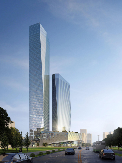 E08地塊(29層(高169.35m)和34層(高200m)),框架剪力墻結(jié)構(gòu)。