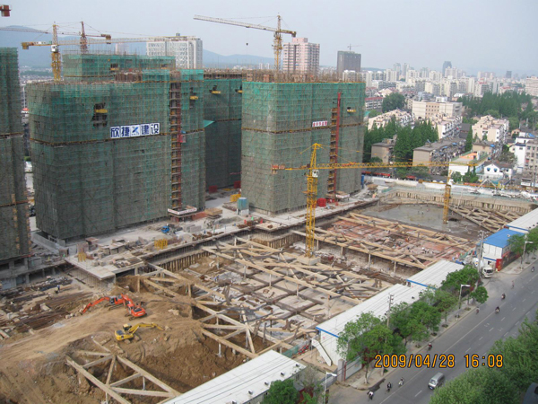 支護(hù)型式:采用鉆孔灌注樁加一層支撐擋土結(jié)構(gòu),基坑西側(cè)采用圓環(huán)支撐,東側(cè)采用對(duì)撐,圓環(huán)和對(duì)撐有機(jī)結(jié)合。圓環(huán)支撐不僅空間大,挖土方便,而且經(jīng)濟(jì)。支撐材料采用鋼筋砼,具有整體性好、剛度大,而且布置靈活等優(yōu)點(diǎn)。建設(shè)單位對(duì)設(shè)計(jì)非常滿意,同時(shí)得到了宜興建設(shè)局的表揚(yáng),取得了良好的社會(huì)效益。