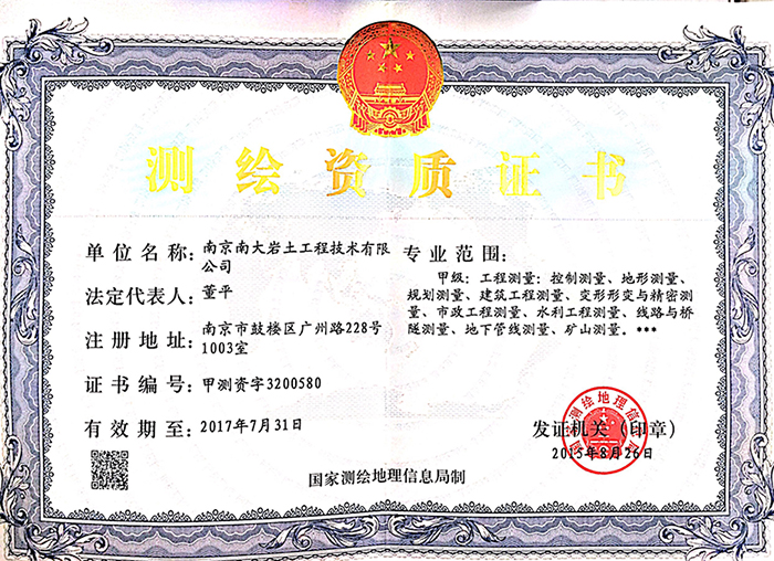 熱烈慶祝我公司取得國家測繪局頒發(fā)的甲級測繪資質(zhì)證書
